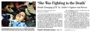 The Post‘s article of April 3 appeared beneath the headline: “‘She was fighting to the death.’” And it described how Lynch had fought fiercely in an ambush in southern Iraq in the early days of the Iraq War, that she had been shot and stabbed before taken prisoner.