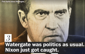Instead, the article addressed hackneyed claims such as “Watergate was politics as usual; Nixon just got caught” or obscure arguments such as “Nixon could have quieted the scandal by firing employees.” The sort of stuff few people find especially compelling.