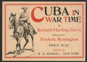 Davis repurposed his dispatches to the Journal (as well as Remington’s sketches) in a book published in 1897; its title: Cuba in War Time.